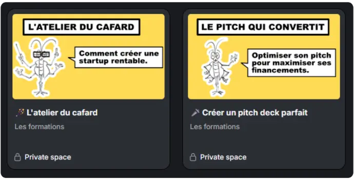 Dans l'atelier de métamorphose, vous trouverez 3 formations avec des outils pratiques et des exercices à appliquer sur votre projet.