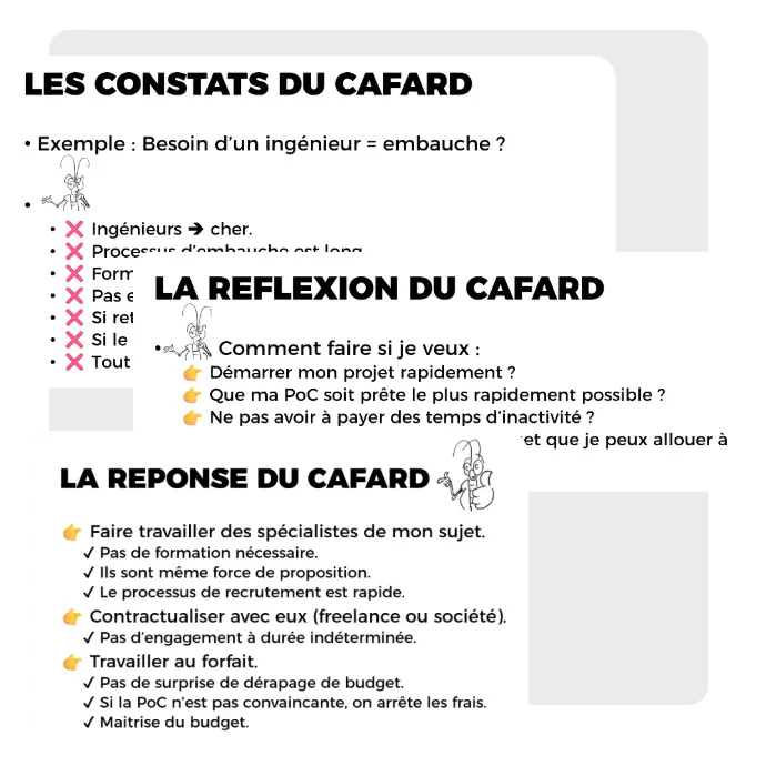 Trois grands piliers de la stratégie du cafard sont abordés :