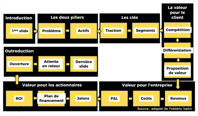 - Le chemin de fer à suivre pour votre pitch deck slide par slide.